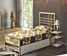 نوع: تخت تک نفره فلزی رئال T144 جنس تخت: تمام فلزی رنگبندی: سفید، مشکی، طلایی برای رنگ طلایی: آبکاری فورتیک بدون تغییر رنگ میباشد برای رنگ سفید و مشکی: استاتیک کوره ای نوع کفی تخت: فلزی این تخت یک نفره در تخت دو نفره هم تولید میشود امکان خرید کشو،پاتختی،میز آرایش و تشک برای این تخت وجود دارد دستگیره کشو: توکار جنس میز آرایش: تمام فلزی آبکاری شده با فورتیک