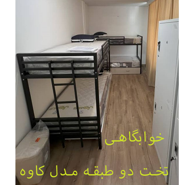 تخت دو طبقه فلزی مدل کاوه D124 این تخت دو طبقه برای دو نفر هستش که قسمت تشک خور آن 200×90 سانتی متر میباشد جنس تخت خواب تماما" به صورت فلزی است که در دو رنگ سفید و مشکی تولید میشود نوع کفی تخت به صورت سه تیکه فلزی است که سر همگی آنها دارای لاستیک بوده که باعث میشود کفی تخت جیر جیر نداشته باشد به همراه این تخت دو طبقه دو عدد حفاظ و یک عدد نردبان ارائه میشود ستون های تخت به صورت فلزی چهارگوش است که هرکدام دارای درپوش میباشد این تخت دو طبقه دارای حفاظ از دو طرف میباشد وزن تخت: حدود 32 کیلو بدون کفی تخت سایز ستون: 40×40 میلی مربعی شکل قسمت های دیگر: 20×30 میلی نوع رنگ: کوره ای ارتفاع کل تخت: 150 سانتی متر