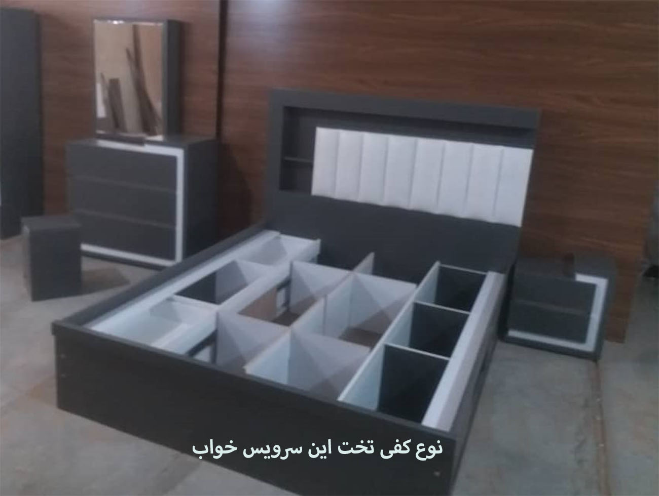 نوع: سرویس خواب ام دی اف هخامنش S2611 جنس: ام دی اف مرغوب جنس جعبه داخل کشو: ملامینه ضد خش جنس بدنه: با روکش ضدخش و ضد آب لبه های ورق: پوشش نوارPVC با چسبندگی بالا فرم تاج تخت: لمسه مربع شکل و کمد مخفی درب ریلی و دارای دوطبقه شکل روکش تاج تخت: لمسه مربع از جنس چرم کفی تخت: نئوپان مرغوب تنوع رنگ: دارد (چهار رنگ): سفید، لیون، گردویی روشن و گردویی تیره ضمانت نامه: دوسال گارانتی و 5 سال خدمات پس از فروش زمان تحویل 10 الی 15 روزکاری نوع بسته بندی: با مشماء حباب دار ضخیم و ضد ضربه نوع بست و اتصالات: پیچ خودکار MDF و پیچ فیکس
